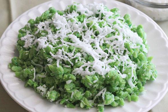- Sau cùng, bạn cho thêm dừa nạo, thêm một chút vừng, một chút đường hay đậu xanh mịn… để món ăn thêm ngon hơn